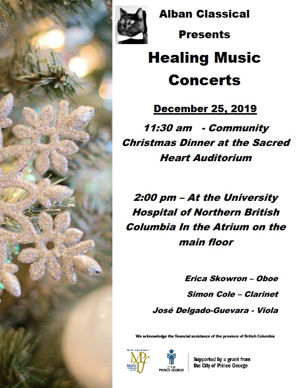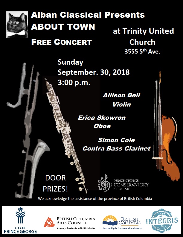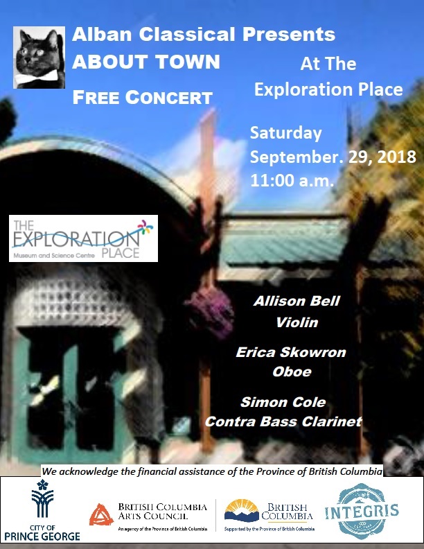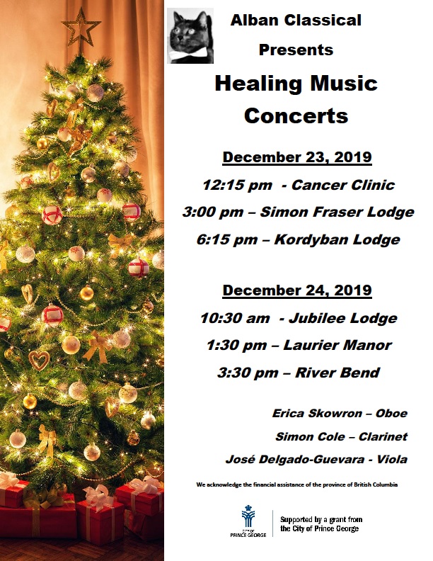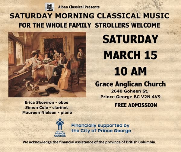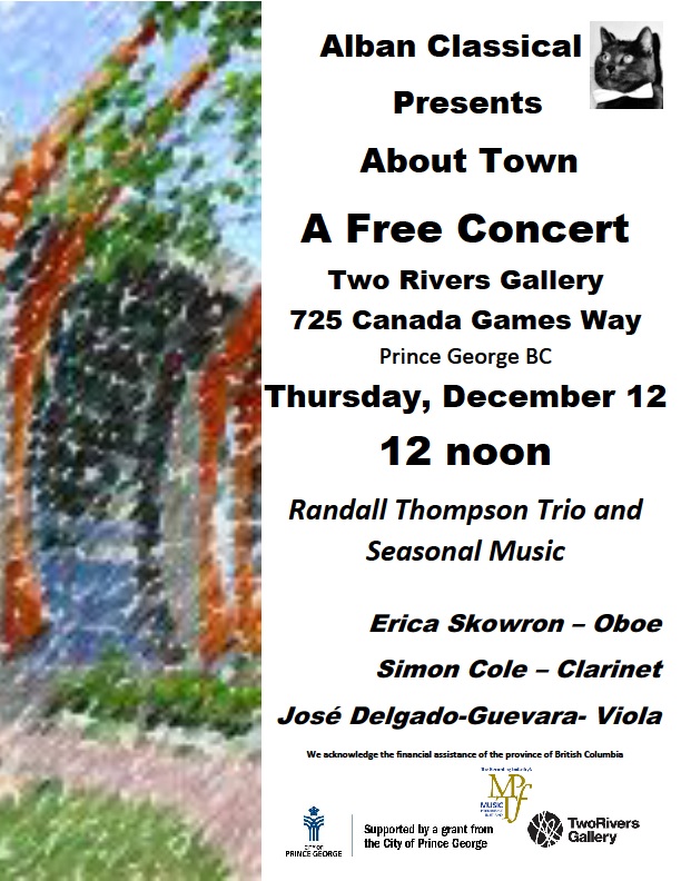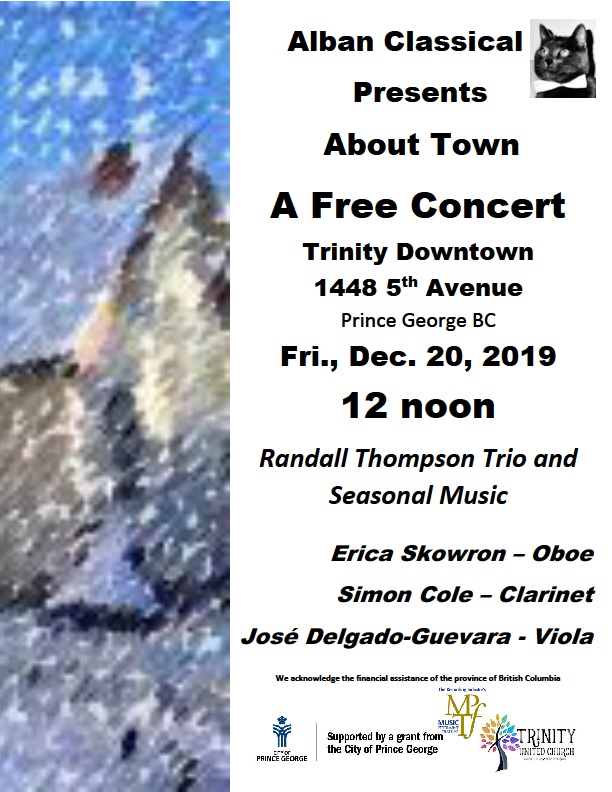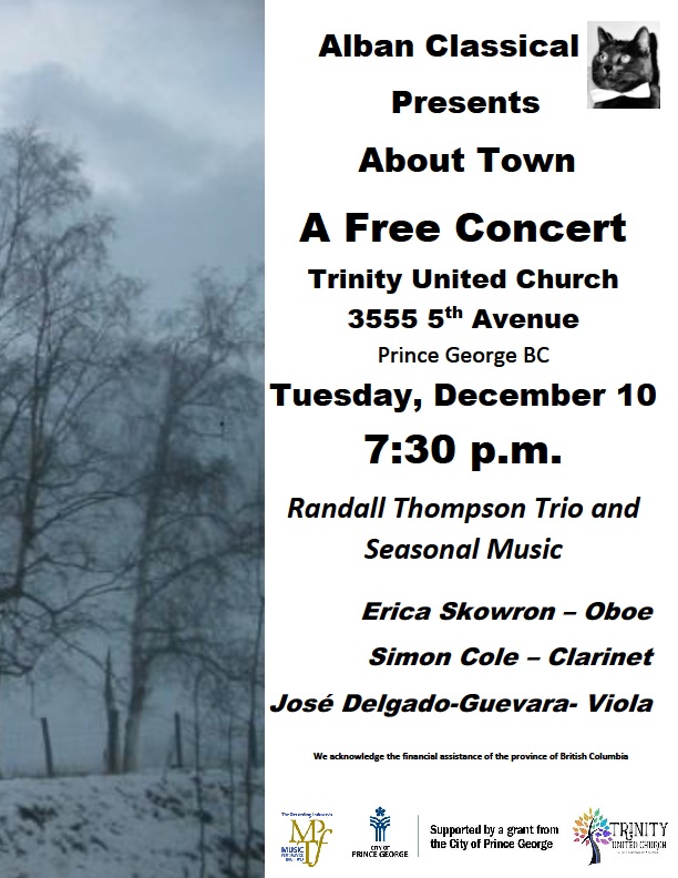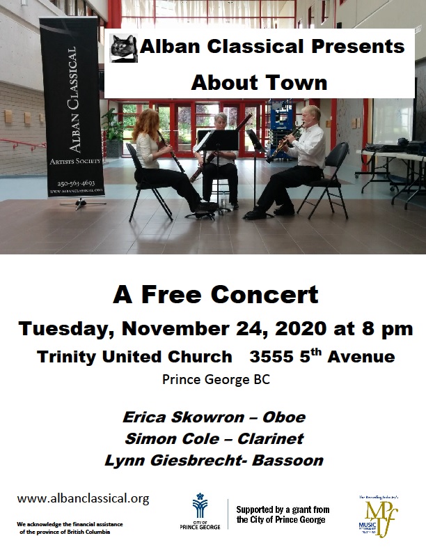 This fall 2020 we will be presenting 5 trio concerts around Prince George funded by Alban Classical and the City of Prince George.