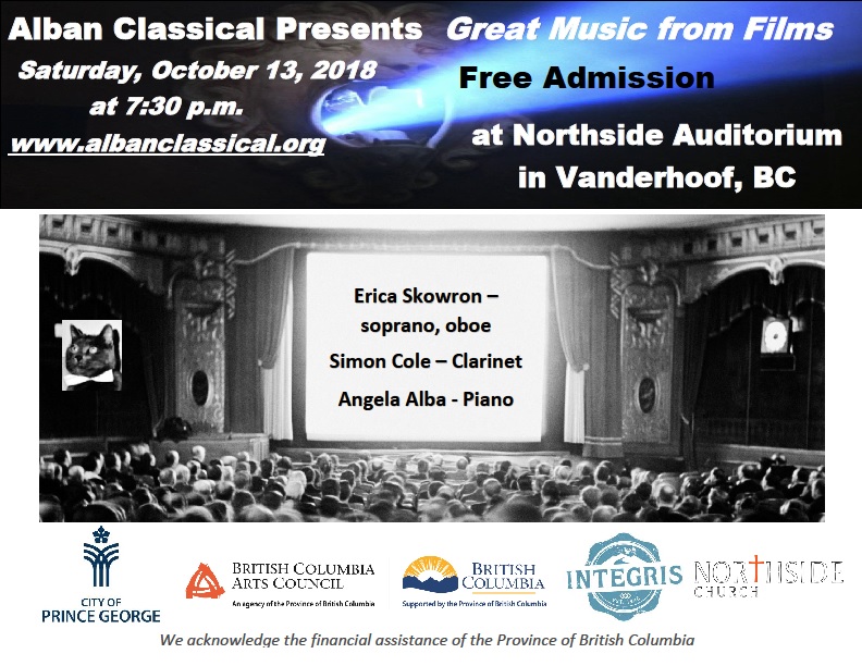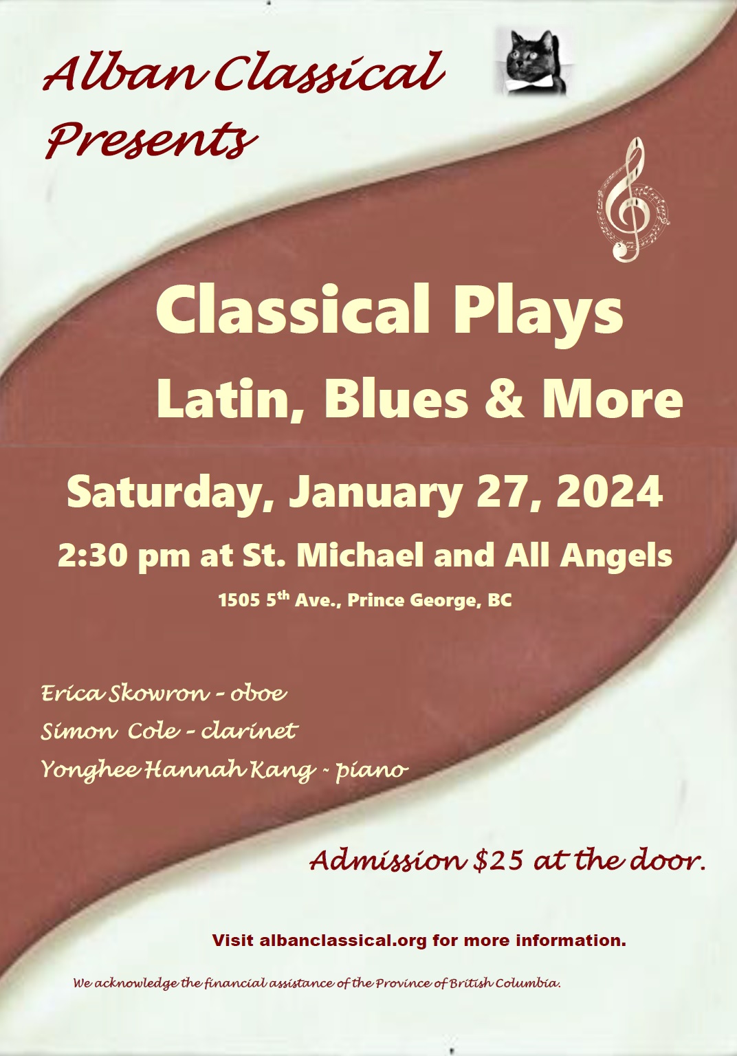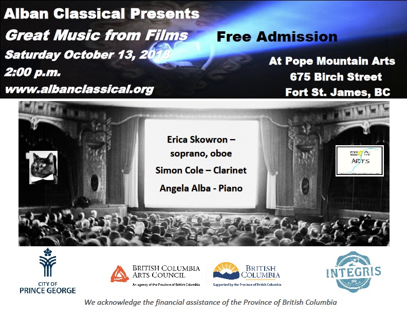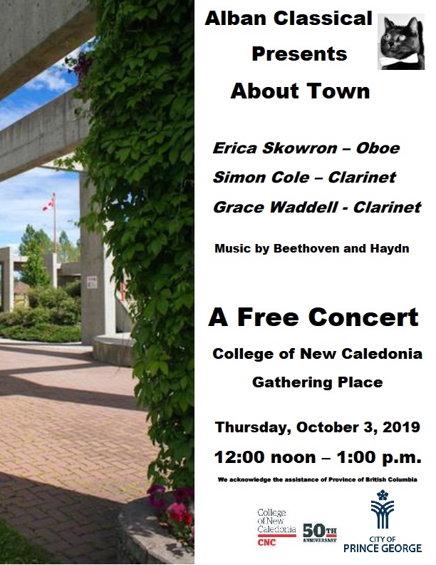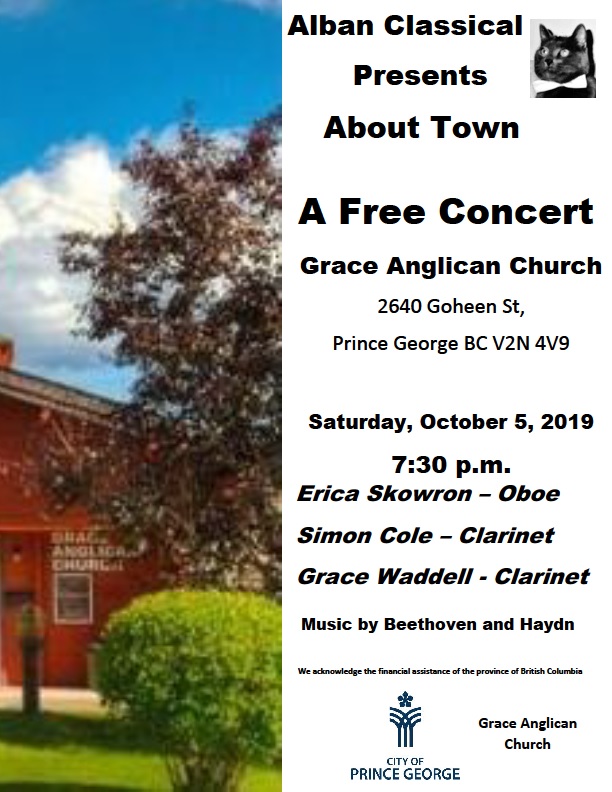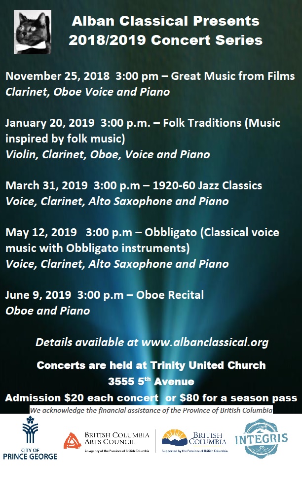 This fall 2020 we will be presenting 5 trio concerts around Prince George funded by Alban Classical and the City of Prince George.